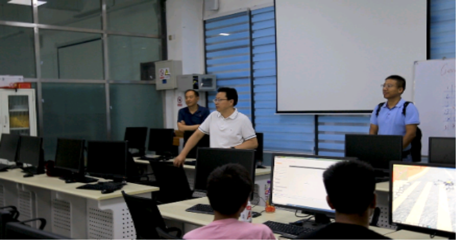 座谈会结束后,邹进贵教授和郭宝宇副总经理来到摄影测量与遥感实验室,看望正在训练参加2023年度全国大学生测绘学科智能创新创业大赛的同学们,向学生介绍了竞赛基本情况、每个竞赛项目中的备考要点和注意事项等,并鼓励同学们坚定理想信念,克服困难扎实训练,预祝取得优异成绩。两位专家还参观了地质工程系部分实验室,并对实验室建设和运行管理工作提出了宝贵意见和建议。